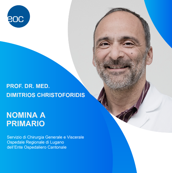 Nella sua seduta di ottobre 2024 il Consiglio di Amministrazione dell’Ente Ospedaliero Cantonale (EOC) ha nominato il Prof. Dr. med. Dimitrios Christoforidis alla funzione di primario del Servizio di Chirurgia Generale e Viscerale dell’Ospedale Regionale di Lugano (ORL) che garantisce gli unici 4 mandati di Medicina Altamente Specializzata (MAS) attribuiti al Ticino nell’ambito della chirurgia viscerale di chirurgia del fegato, chirurgia del pancreas, chirurgia del retto e chirurgia bariatrica.